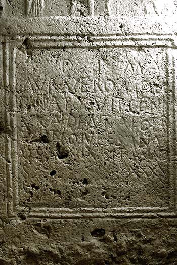 - D(is) I(nferis) Ma(nibus) / Aur(elio) Vero mem/oria(m) posuit coni/ux Audenta eoer/unt (!) co(n)iu<g=C>(al)es(?) ann/os vixsit(!) ann/os XXXV