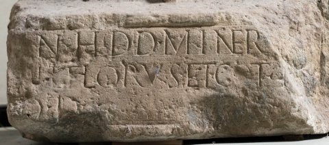 - [I]n h(onorum) d(omus) d(ivinae) Miner[vae Aug(ustae)] / [-]il() Florus et co(niunx) et f[ilii ?] / d(onum) d(ederunt)