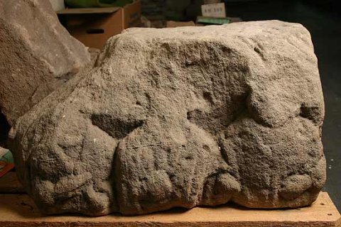 - unten und links abgebr., stark verwittert, in der Obderseite Hebeloch