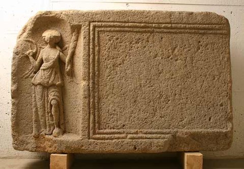 - Im April 1866 auf dem Altenburger Feld, unweit der Friedhofkapelle, beim Pflügen als Deckplatte eines Ziehbrunnens gefunden und ins Lapidarium gebracht. (Haug-Sixt² 381f.)