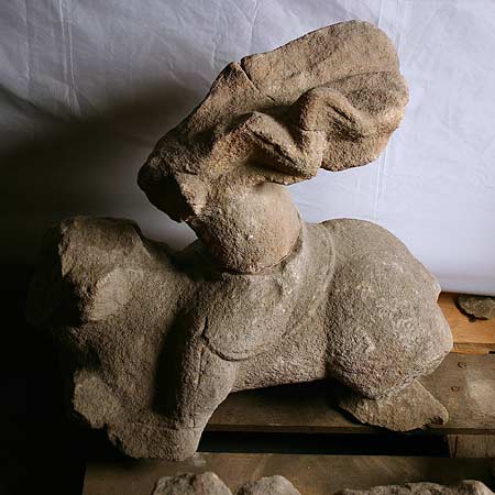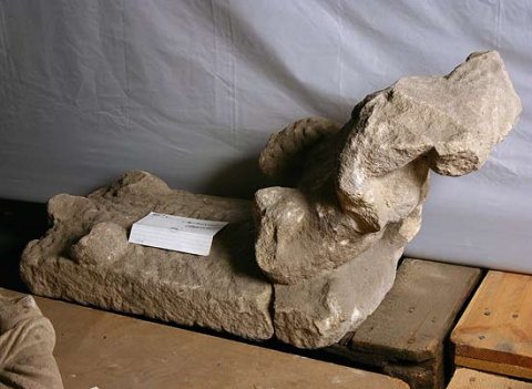 - 3 Fragmente (Kopf und Arme des Jupiter, Kopf und Beine des Pferdes fehlen, Gigant stark zerstört