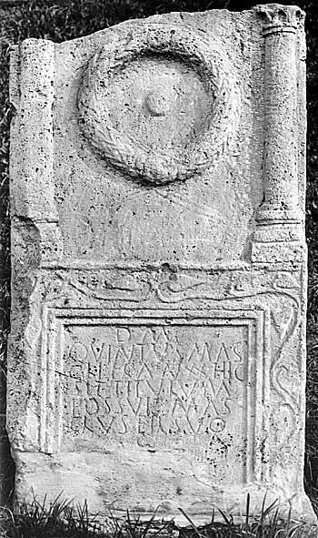 - D(is) M(anibus) / Quintus Mas/cli f(i)l(ius) an(norum) XX hic / sit(us est) titulum / possuit (!) Mas/clus fil(io) suo / C C