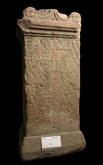 - Fortunae / sanctae L(ucius?) / Iuvencius / Iustinus / pro sa/lute sua / et suorum / p(osuit)