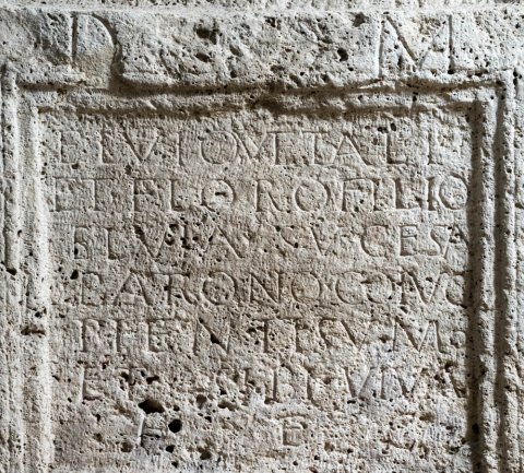- D(is) M(anibus) / Elvio Vetali / et Floro filio / Elvia Suc(c)es(s)a / patrono co(n)iugi / pientisumo(!) / et sibi viva / fec(it)