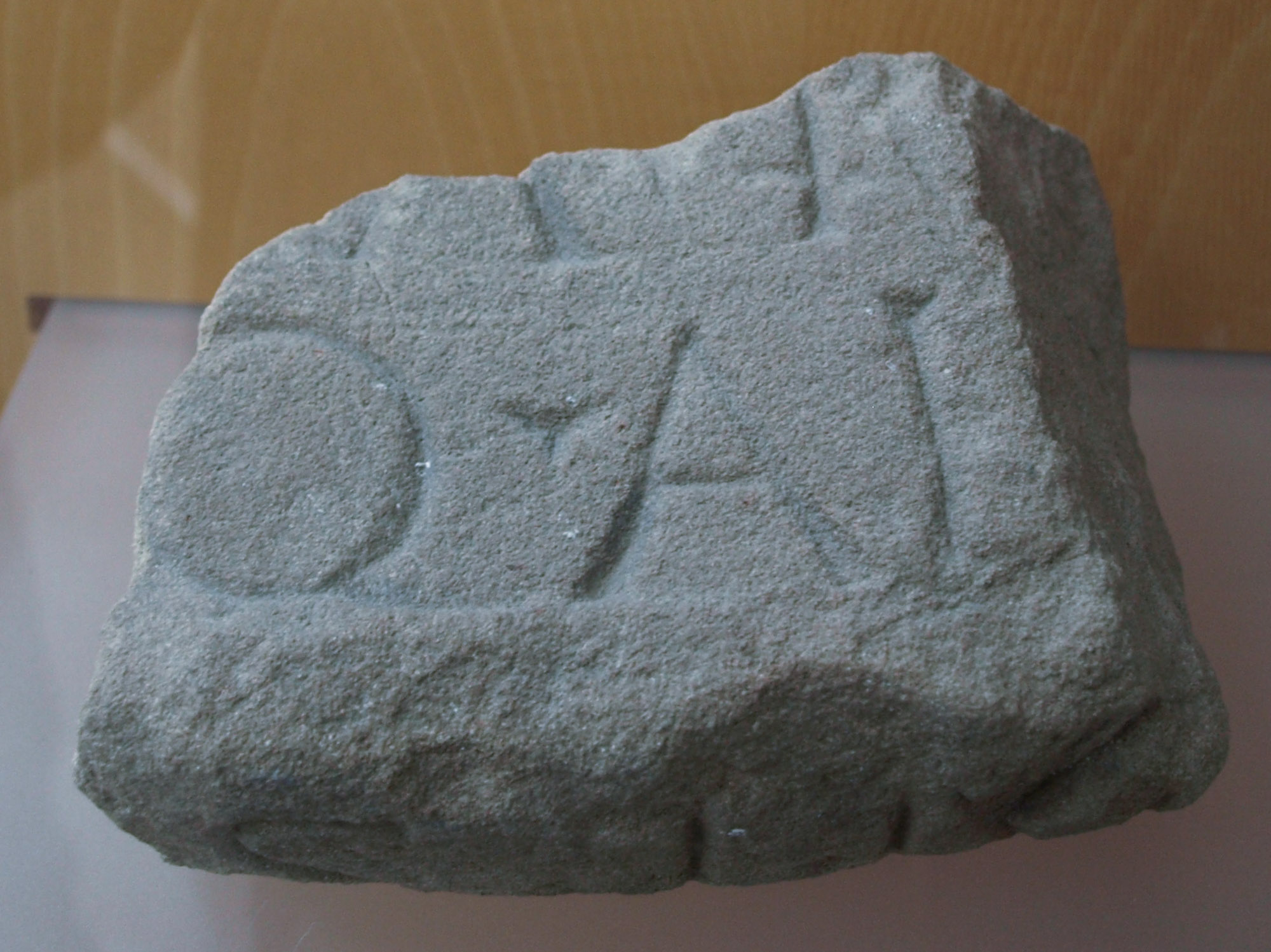 7873 Bruchstücke einer runden Tischplatte mit Inschrift