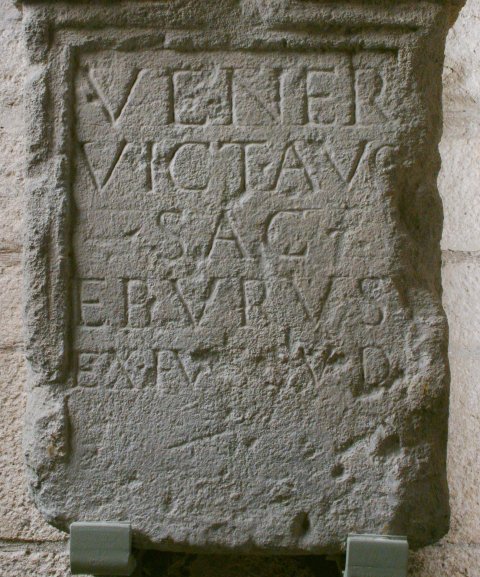 - Veneri / Vict(rici) Aug(ustae) / sac(rum) / Eburus / ex ius[s]u d(eae)