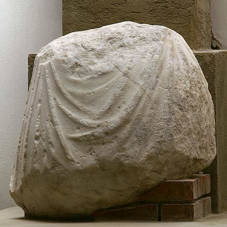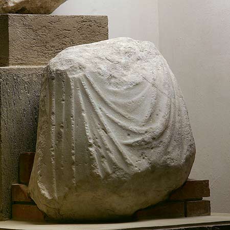 - Mythische Figur : Reste einer überlebensgroßen weiblichen Gewandstatue. Juno der capitolinischen Trias von Savaria (siehe Nr. 7978, 7980)