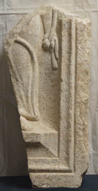 - Mythische Figuren: In den Feldern seitlich der Schrifttafel je eine Victoria mit Palmzweig.
