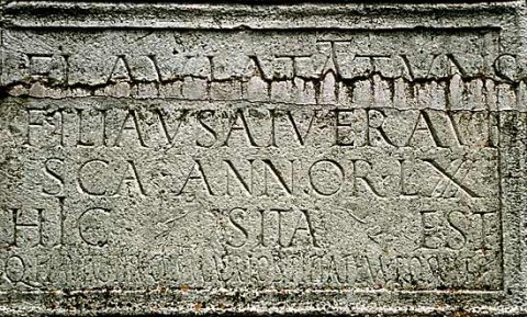 - Flavia Tattunis / filia Usaiu Eravi/sca annor(um) LXXX / hic sita est / Q(uintus) Flavius Titucus matri ob pietatem posuit