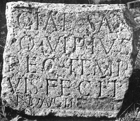 - [Apollini et H]ygiae san[ctis]/[simis] Q(uintus) Ulpius [Felix] / [Aug(ustalis) mun(icipii) B]re<g=C>(etionis) temp[lum] / [impensis s]uis fecit [Imp(eratoribus)] / [Aur(elio) Anto]nino Aug(usto) II [[et Sept(imio) [Geta co(n)s(ulibus)]]]