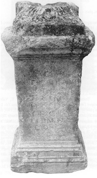 - [I(ovi)? O(ptimo)? M(aximo)? et? Iunoni?] // Regin(a)e / Aur(elius) Respectus / vet(eranus) leg(ionis) II ad(iutricis) p(iae) f(idelis) / ex voto posuit / aram d(at) d(edicat) / Agricola / et Clementino / co(n)s(ulibus)