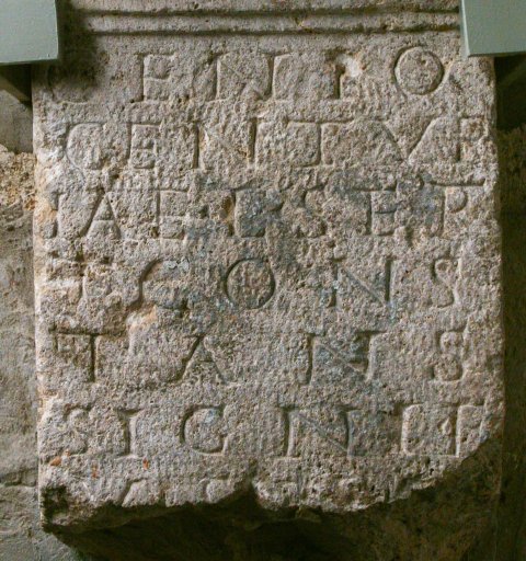 - Genio / centur/iae L(ucius) Sept/i(mius) / Cons/tans signif(er) / v(otum) s(olvit) [l(ibens) m(erito)]