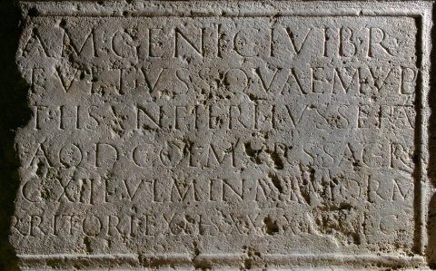 - [Templum et statu]am Geni civib(us) R(omanis) / [consistentib(us) terri]t(orii) Vetuss(alinensium) quae M(arcus) Ulp(ius) / [--- datis ex tes]t(amento) HS X(decem milibus) n(ummum) fieri iusserat / [M(arcus) Ulpius --- IIvir?] m(unicipii) Aq(uincensium) d(ecurio) col(oniae) Murs(ensium) sacerd(os) / [prov(inciae) Pann(oniae) infer(ioris) trib(unus) l]eg(ionis) XII fulm(inatae) in memoriam / [patris loco publico te]rritori ex HS XXXX (milibus) n(ummum) fec(it)