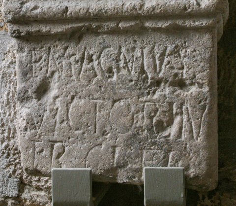 - Libero [et Liber]ae / sac(rum) // P(ublius) Magnius / Victorin(us) / tr(ierarchus) cl(assis) Fl(aviae) / [Pannonic(ae)?] / [v(otum) s(olvit) l(ibens) m(erito)]
