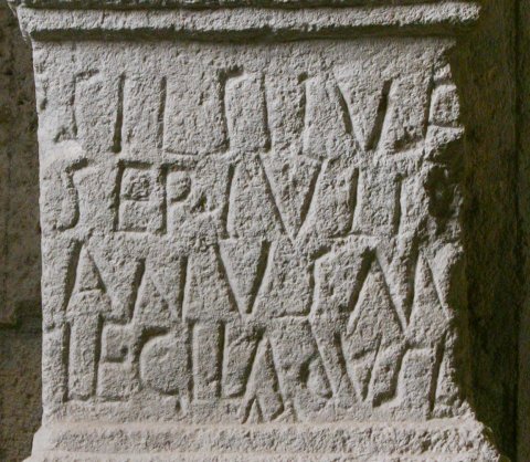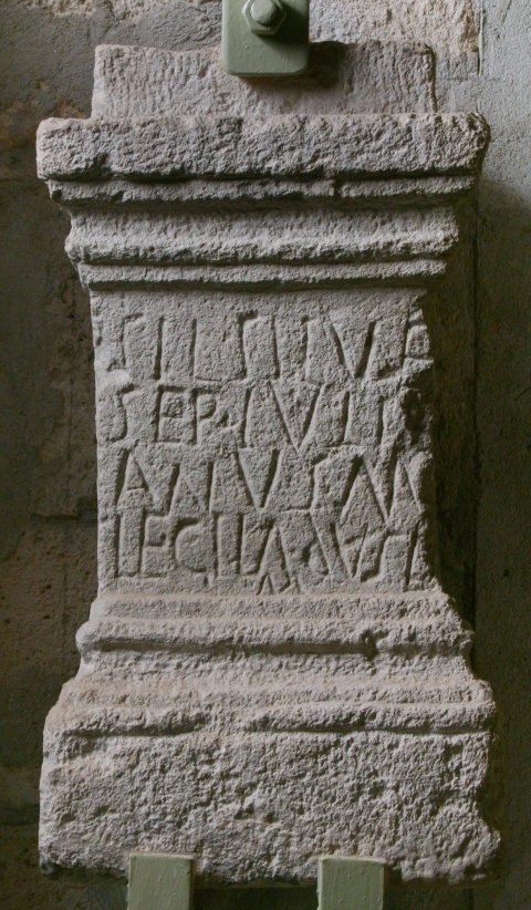 - Sil(vano) Silve(stri) / Sep(timius) Iuli/anus m(iles) / leg(ionis) II ad(iutricis) v(otum) s(olvit) l(ibens) / m(erito)