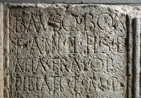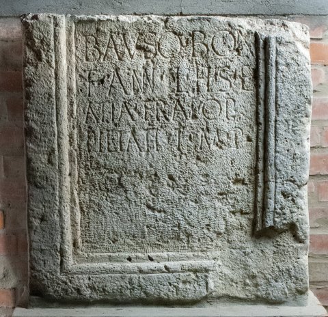 - Bauso Bon(i) / f(ilius) ann(orum) L h(ic) s(itus) e(st) / Atta frat(ri) op(timo) / pietati t(itulum) m(emoriae) p(osuit)