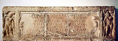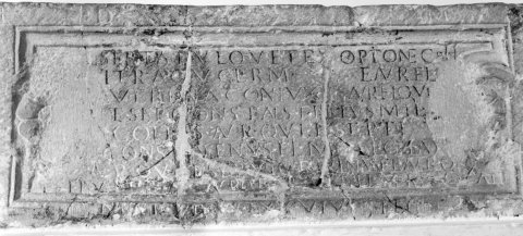 - D(is) M(anibus) // L(ucius) Sep(timius) Tatulo vet(eranus) ex optione coh(ortis) / I T(h)racu(m) Germ(anicae) et Aurel(ia) / Verina coniux L(ucius) Aurel(ius) qui / et Sep(timius) Constans filius mil(es) / coh(ortis) s(upra) s(criptae) Aur(elius) qui et Septi(mius) / Constantinus fil(ius) mil(es) leg(ionis) I ad(iutricis) / Aur(elius) qui et Sep(timius) Victorinus f(i)l(ius) Aur(elius) qui / et Sep(timius) Verin[us f(i)l(ius)] Aur(eli-) q(u-) et S(eptimi-) (A)emil(i-) f(i)l(i-) Mereccusae // mater(!) vix(it) an(nos) LXX vivi s(ibi) fec(erunt)