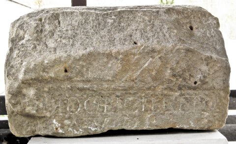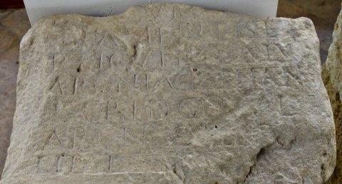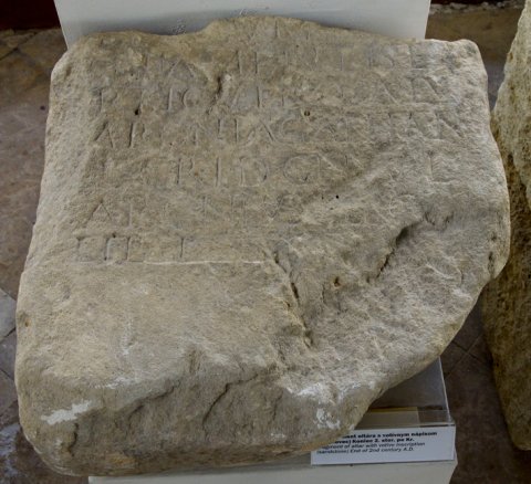 - [I(ovi)] O(ptimo) M(aximo) Dolichen{n}o / [S]al(uti) Aug(ustae) / [ae]dem cum sui[s] / [or]namentis et / [po]rticu pro salu[te / [-]aroni Agathang[eli] / [s]ac(erdotis) G(e)r(ulatensis) I(ovis) D(olicheni) Cl(audius) |(mulieris) l(ibertus) / [-]aronius Legus / lib(ertus) p(ecunia) s(ua) [f(ecit)]