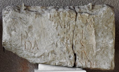 - ---] / [--- t(erram)] l(evem) o(ptes) r(ogo) / [---]i(a) Alb[ia]n(a) / m(ater) [h(ic)] s(ita) e(st) / D(ecimus) A[lbia]nus / (h)ic [alum]nu(s) eiu(s) / [h(eres)] p(osuit) o(pto) t(erram) l(evem)