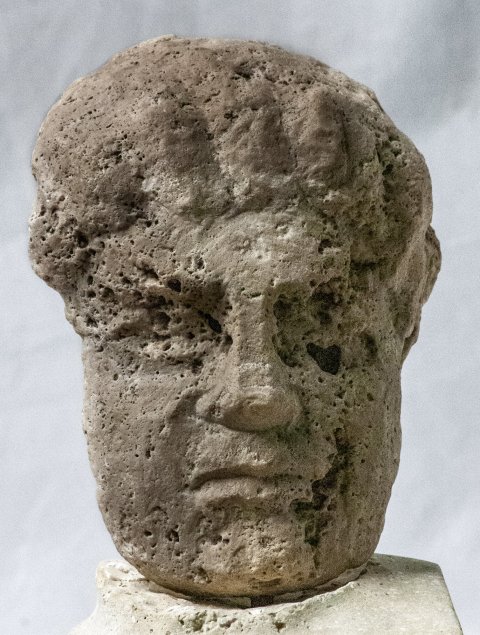 - Porträt einer Frau mit Melonenfrisur (oder eines bartlosen Jünglings ?). Teil eines Grabreliefs.
