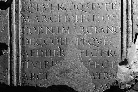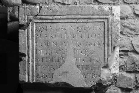 - Q(uinto) Severio Q(uinti) Severi / Marcelli filio / Cornel(ia) M[a]rciano / dec(urioni) Col(oniae) I[u]l(iae) Eques[t(ris)] / aedil(i) pr[ae]fect(o) pro / IIviris [pra]efect(o) / arce[ndis l]atroc(iniis) / IIvi[r(o) --- fla]m(ini) Au[g(usti)]
