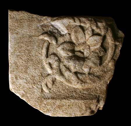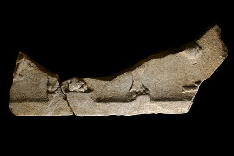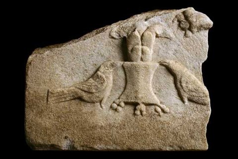 - Tier : erhalten sind auf einzelnen Podesten die Tatzen eines nach rechts gehenden Raubtiers (Löwe ? Greif ?). Vor ihm Schwanz eines stehenden Vogels, hinter ihm Teil einer Volutenranke mit großer Blüte. Vom selben Monument ein weiteres Fragment mit von zwei Vögeln flankiertem Gefäß mit Löwenfüßen, aus dem ein Blattkelch wächst. Rechts oben Rest einer Raubtierpranke.
