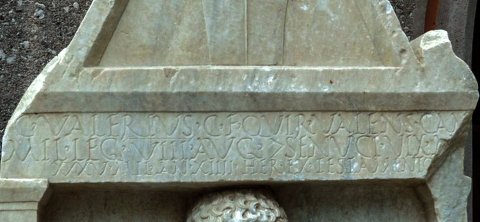 - C(aius) Valerius C(ai) f(ilius) Quir(ina) Valens Cam(unnus) / mil(es) leg(ionis) VIII Aug(ustae) |(centuria) Senuci(onis) vix(it) a[n(nos)] / XXXV mil(itavit) an(nos) XIIII her(es) ex testamento