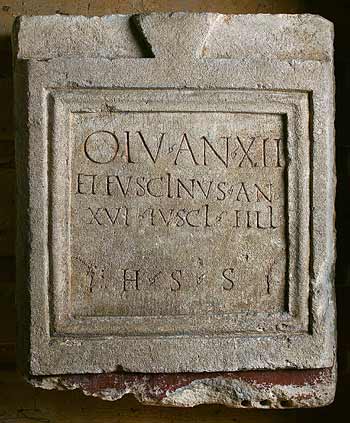 - Olu(s) an(norum) XII / et Fuscinus an(norum) / XVI Fusci fili / h(ic) s(iti) s(unt)