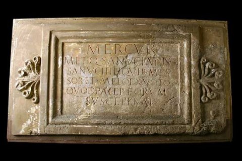 - [Mer]cur(io) / M(arcus) e[t Q(uintus) Sa]nuci Atti / Sanuc[i f]ili(i) Quir(ina) Mes/sor et Maelo ex voto / quod [p]ater eorum / s[u]sceperat
