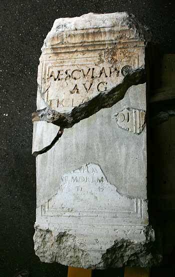 - Dem Aesculapius Augustus, Tiberius Claudius Claudianus(?), ... hat einen Altar, Standbilder und Basen aufstellen und in Marmor ausführen lassen. Der Platz wurde auf Beschluss des Stadtrates zur Verfügung gestellt.