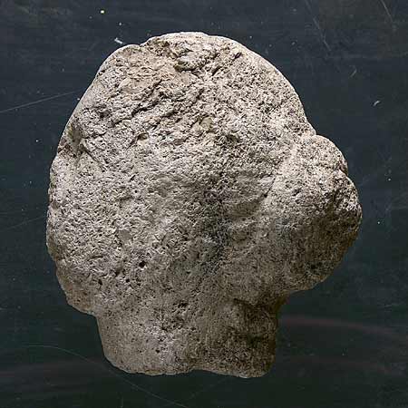 - Mythische Figur (Göttin ?): Kopf einer jugendlichen Frau, im Nacken Haarknoten, aus dem zwei Strähnen auf die Schultern fallen.