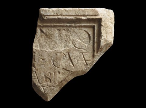 - nur rechte obere Ecke erhalten, Inschr. tlw. abgeschlagen