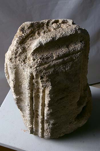- Architravvorsprung über einer Säule. Kanten an drei Seiten profiliert, darüber Reliefreste