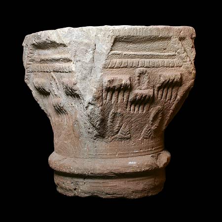- Kapitell mit vier trapezförmigen, gleichartig dekorierten Seiten