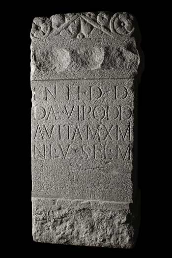 - In h(onorem) d(omus) d(ivinae) / d(e)ae Viroddi / Avita Max(i)mi/ni v(otum) s(olvit) l(ibens) l(aetus) m(erito)