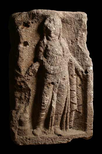 - Mythische Figuren : Juno in Chiton, Mantel und Schleier, rechte Hand über einem Altar. Minerva in Helm, Chiton und Mantel, neben dem linken Fuß Eule. Hercules nackt, über der linken Hand Löwenfell, die Rechte auf Keule gestützt. Mercur im Mantel, in der Rechten Geldbeutel, in der Linken Caduceus, neben dem linken Fuß Hahn.