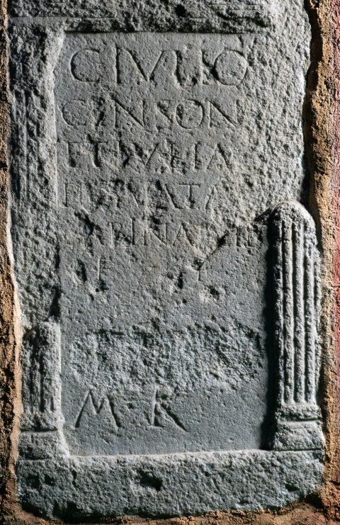 - Alte Lesung: C(aio) Iulio / Censoni f(ilio) / et Iulia(e) / Privata(e) / Sabinae lib(ertae) / f(ilius oder filii) f(ecit oder fecerunt)