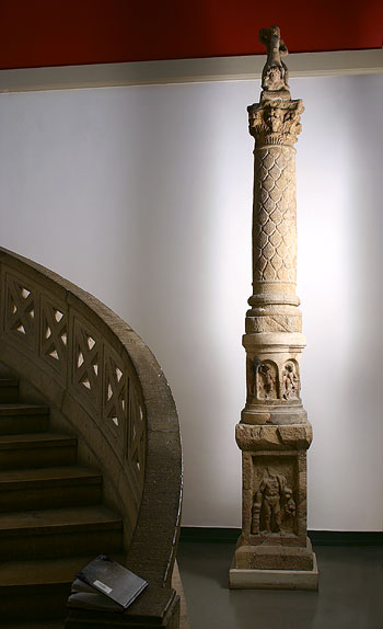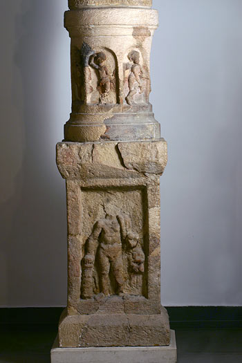 - Mythische Figuren (Juno, Minerva, Hercules, Mercur, Wochengötter, Jupiter, Gigant) : Als Sockel Viergötterstein mit Göttern in Rechtecknischen. Darüber zylindrischer Wochengötterstein mit Rundbogennischen. Geschuppte Säule mit profilierter Basis, korinthischem Kapitell mit Köpfen (Jahreszeiten ?), Statuette des über einen Giganten reitenden Jupter.