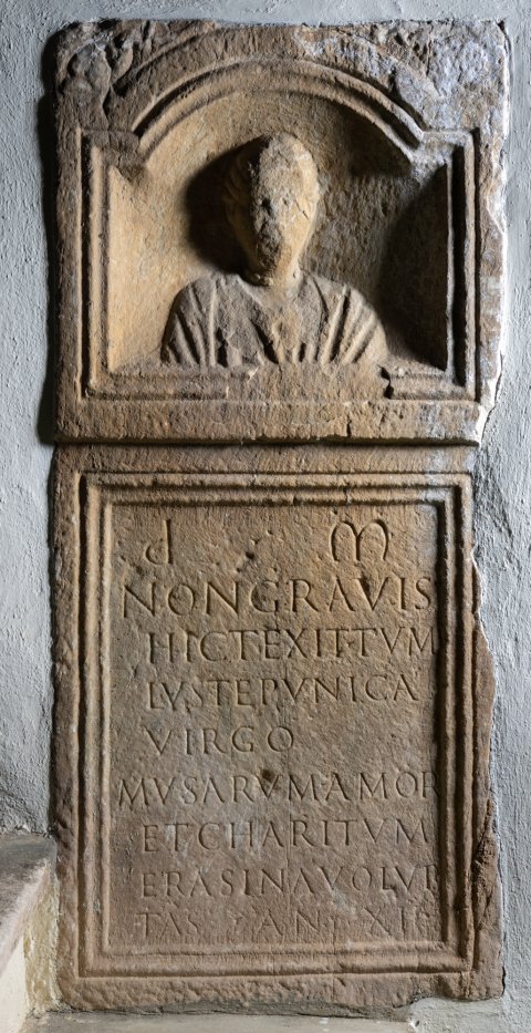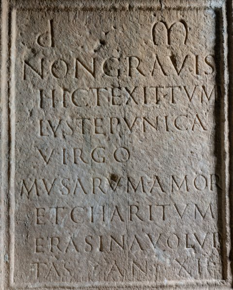 - D(is) M(anibus) / non gravis / hic texit tum/ulus te punica / virgo / Musarum amor / et Charitum / Erasina volup/tas an(norum) XII