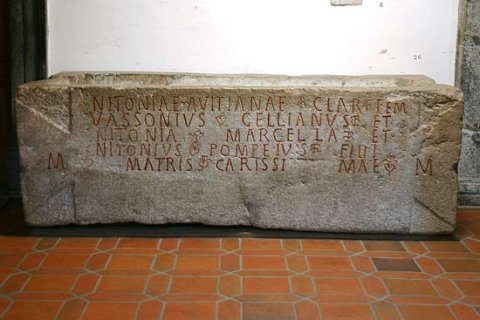 - Nitoniae Avitianae clar(issimae) fem(inae) / Vassonius Gellianus et / Nitonia Marcella et / Nitonius Pompeius filii // MM(anibus) // matris carissimae