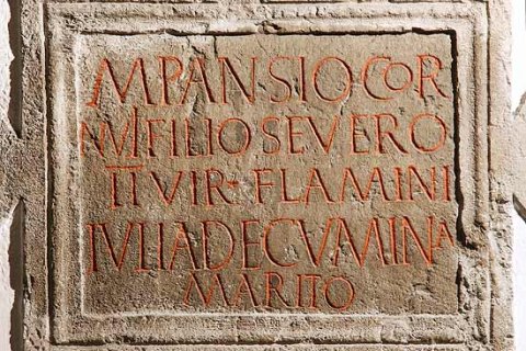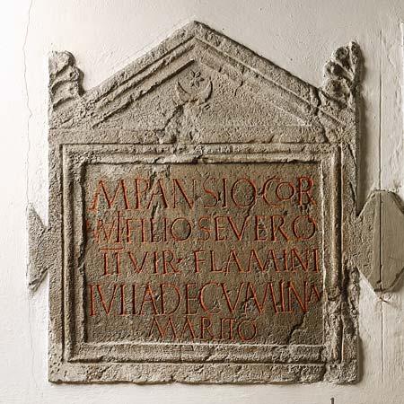 - M(arco) Pansio Cor/nuti filio Severo / II vir(o) flamini / Iulia Decumina / marito