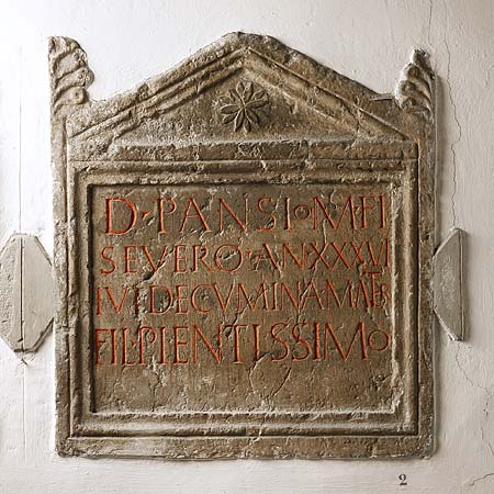 - D(ecimo) Pansio M(arci) fil(io) / Severo an(norum XXXVI / Iul(ia) Decumina mater / fil(io) pientissimo