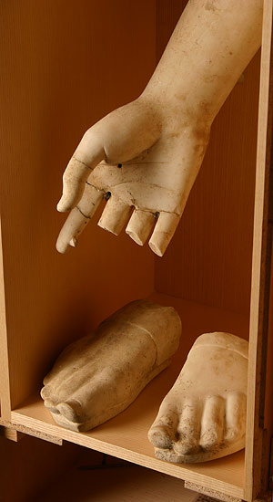 - Kopf, Gorgoneion, rechter Unterarm und Füße erhalten
