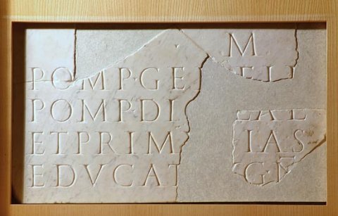 - [D(is)] M(anibus) / Pomp(eiae) Gemell(ae) / Pomp(eia) Dicea l(iberta) / et Primu[l]ia s(erva) / educat(ricis) [A]ug(usti) n(ostri)