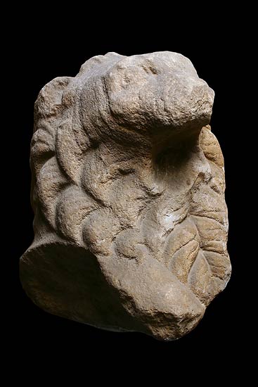 - Kopf mit Rumpfansatz erhalten, verwittert