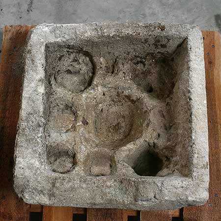 - trogförmige Kiste, im Boden verschieden große Aushöhlungen zur Aufstellung von Gefäßen