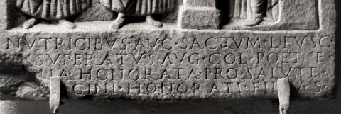 - Nutricibus Aug(ustis) sacrum L(ucius) Fusc(inius) / Exsuperatus Aug(ustalis) col(oniae) Poet(ovionensium) et [fi]lia Honorata pro salute / [- F]uscini Honorati fil(ii) v(otum) s(olverunt)