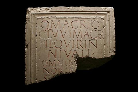 - Q(uinto) Macrio / Cluvi Macr(i) / fil(io) Quirin(a) / Nivali / omnib[us ho]/noribu[s apud] / su[os functo]