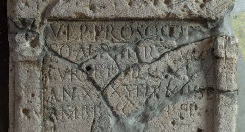 - D(is) M(anibus) // Ulp(ius) Prosostus / eq(ues) al(a)e III T(h)r<a=E>cum / tur(ma) Servilii / C[---] / an(norum) XXX stip(endiorum) X[II(?)] h(ic) s(itus) e(st) / Ambruc[---] p(ater) f(ilio) p(osuit)
