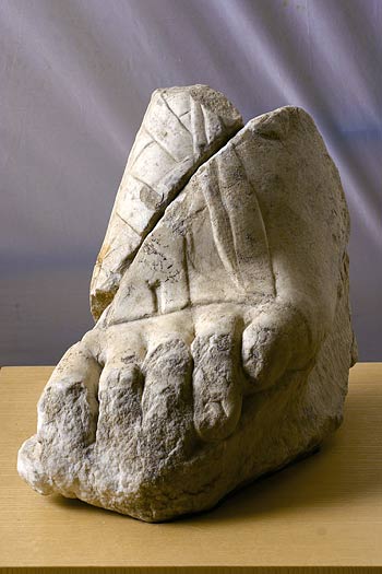 - Linker Fuß eines Mannes mit Sandale. Rekonstruierte Höhe der Statue ca. 3,00 m.